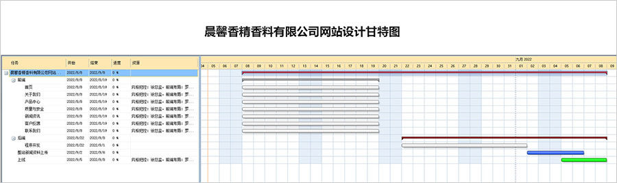 黑眼睛廣告為晨馨香精香料有限公司官網改版設計繪制的甘特圖