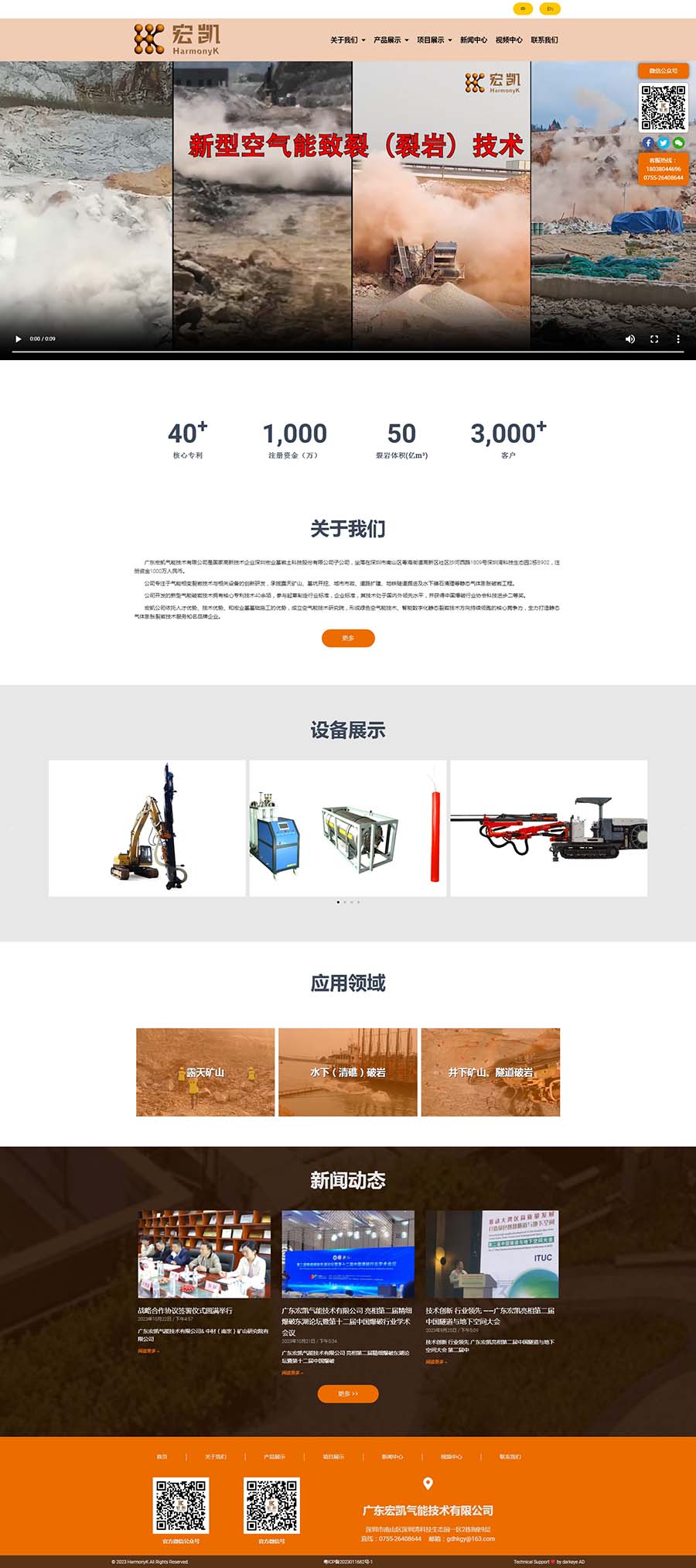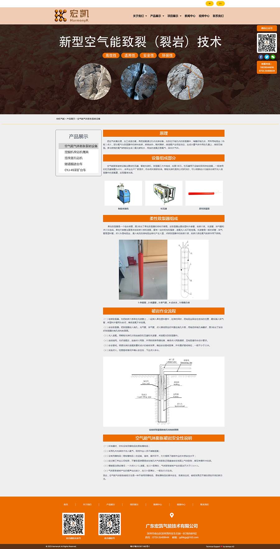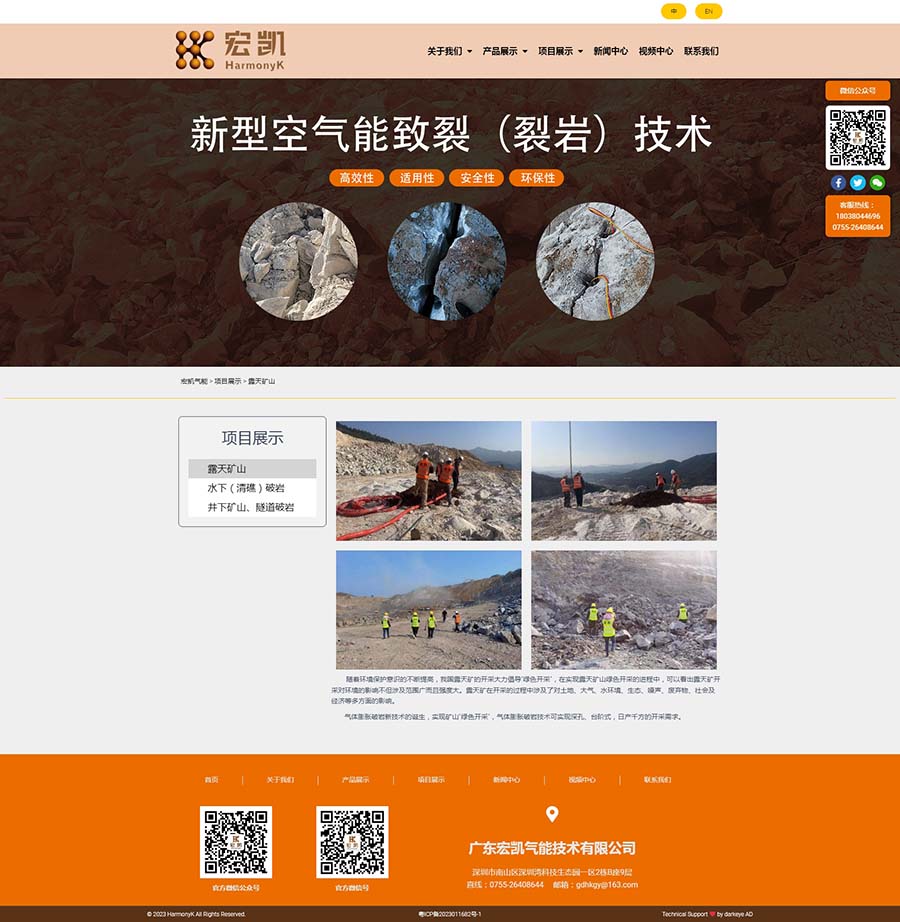 廣東宏凱氣能技術有限公司是國家高新技術企業深圳宏業基巖土科技股份有限公司子公司,坐落在深圳市南山區粵海街道高新區社區沙河西路1809號深圳灣科技生態園2棟B902,注冊資金1000萬人民幣。公司專注于氣能相變裂巖技術與相關設備的創新研發,承攬露天礦山、基坑開挖、城市市政、道路擴建、地鐵隧道掘進及水下礁石清理等靜態氣體膨脹破巖工程。公司開發的新型氣能破巖技術擁有核心專利技術40余項,參與起草制定行業標準,企業標準,其技術處于國內外領先水平,并獲得中國爆破行業協會科技進步二等獎。